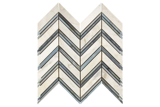 Calacatta Gold Marble Mosaic Chevr Blue Honed
