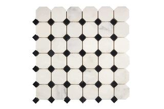Oriental White Marble Mosaic Octagon with Black Dots Polished