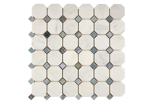 Oriental White Marble Octagon Mosaic with Blue Dots Honed